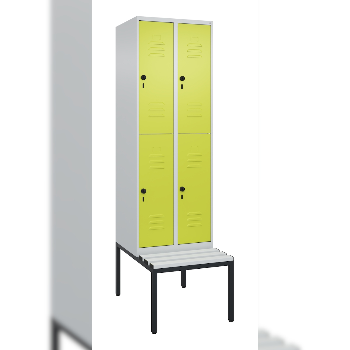 C+P Z-Spind Classic PLUS, Buche untergebaute Sitzbank 2 Abteile, HxBxT 212x30x82cm, Sicherheitsdrehriegel, Hellgrau/Resedagrün von PROREGAL