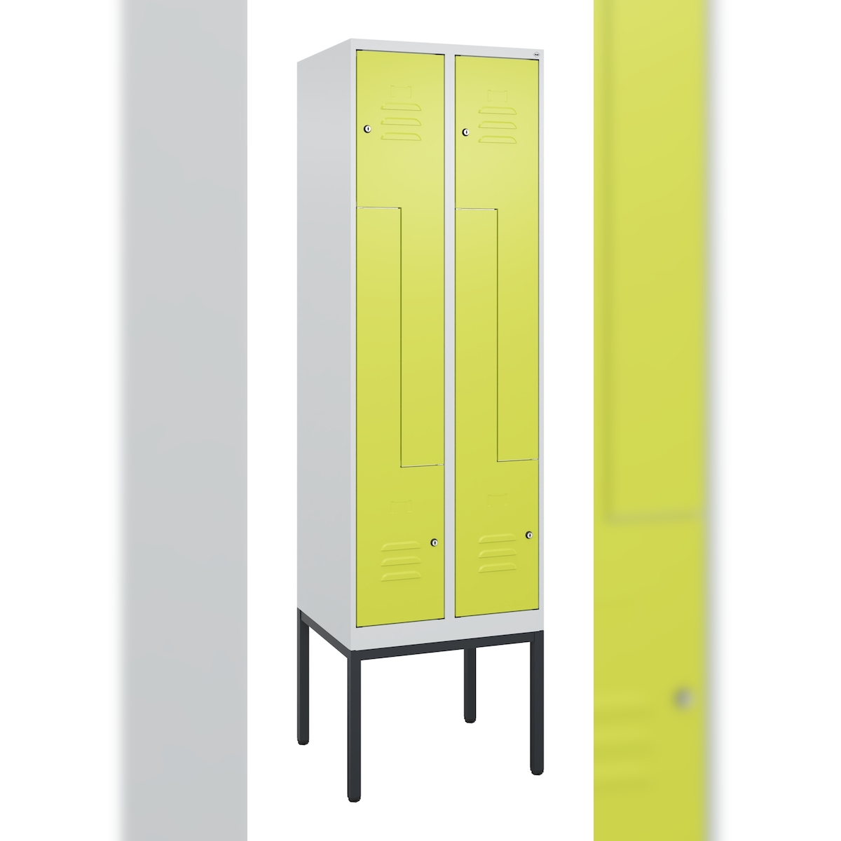 C+P Z-Spind Classic PLUS, Gestell, 4 Abteile, HxBxT 212x60x50cm, Zylinderschloss, Hellgrau/Clowngrün von PROREGAL