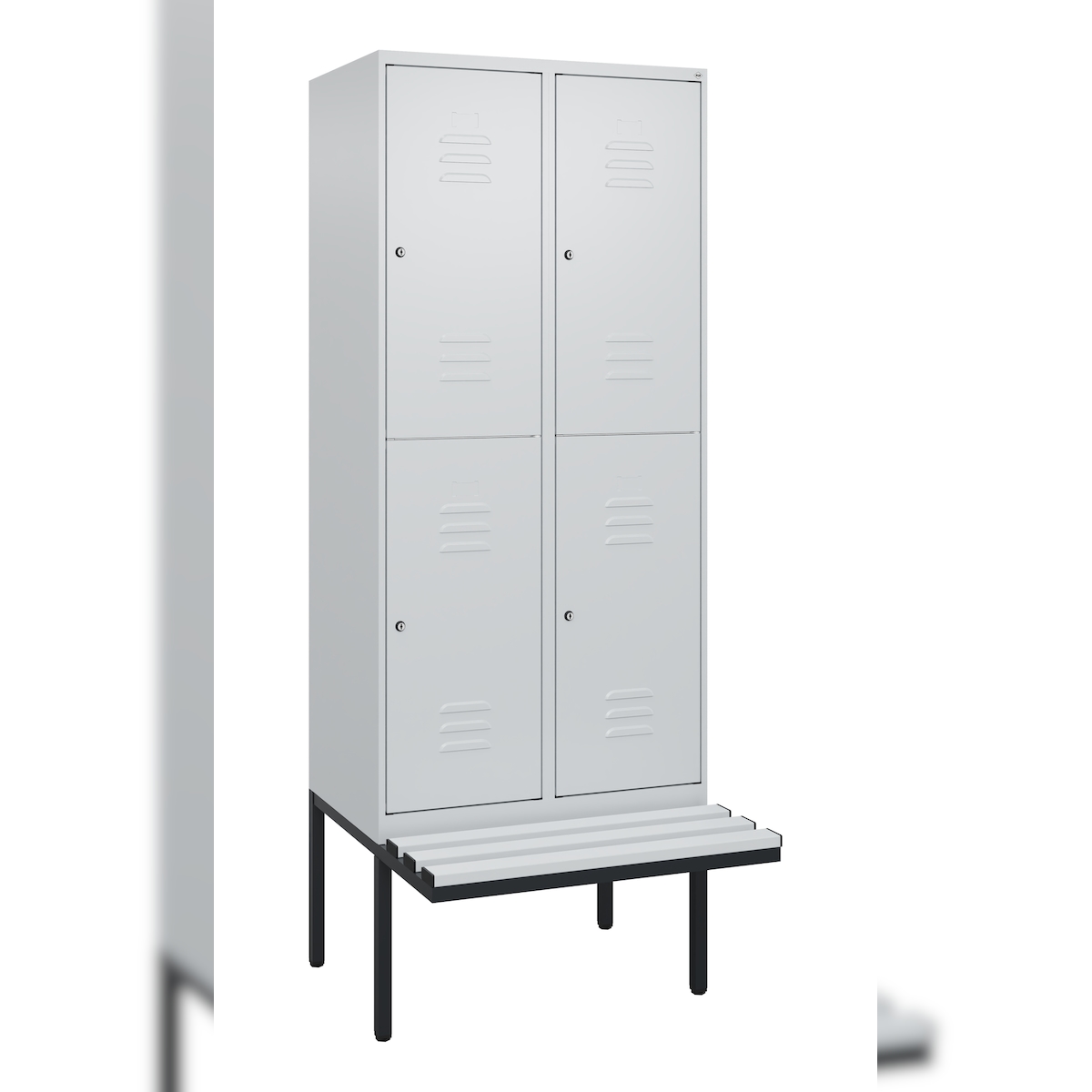 C+P Spind Classic PLUS, Kunststoff schwebende Sitzbank, 4 Abteile, HxBxT 212x80x82cm, Zylinderschloss, Hellgrau/Hellgrau von PROREGAL