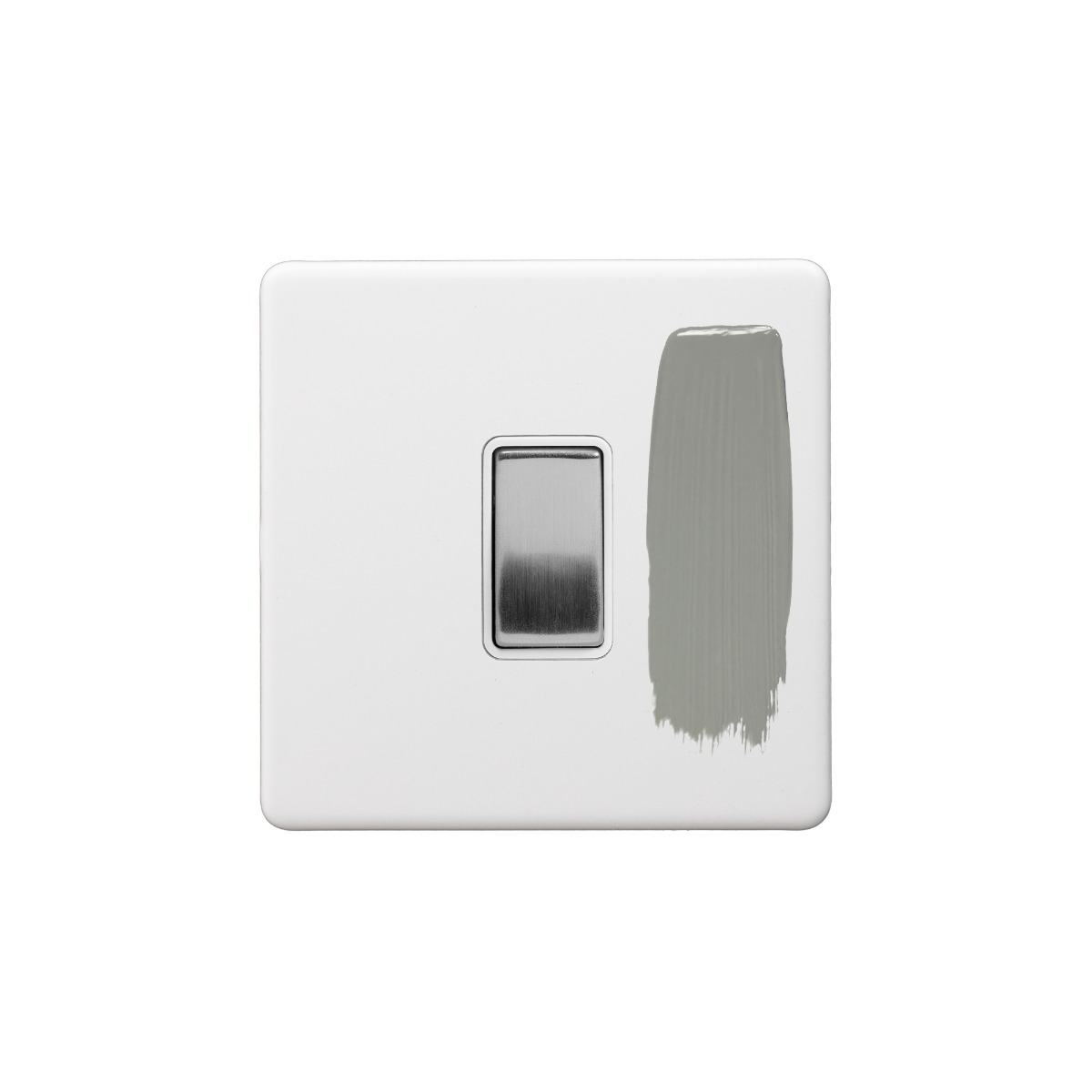 Soho Lighting Primed Paintable 1 Gang Intermediate Switch 10A with Brushed Chrome Switch and White Insert - Size: 86mm x 86mm x 4.5mm