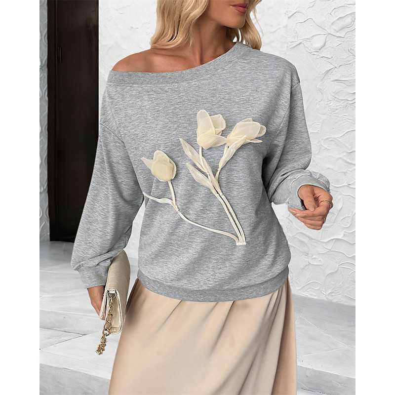 Women's Blouse Dressy Tops Floral Graphic Plain Elegant Vintage Tropical Long Sleeve Crew Neck Regular Tops Work Daily Holiday Patchwork Print Gray Fall Winter
