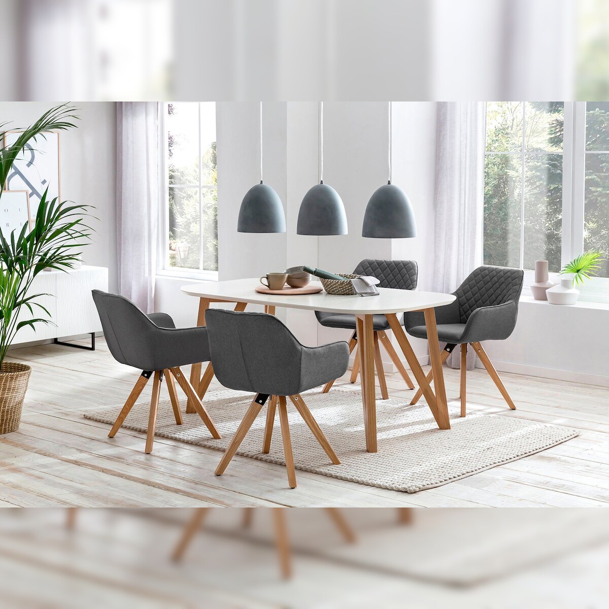 SalesFever Essgruppe 5-tlg. | 160 x 90 cm | Tischplatte weiß + Gestell Eiche | 4x Stuhl Textil grau + Beine Eiche