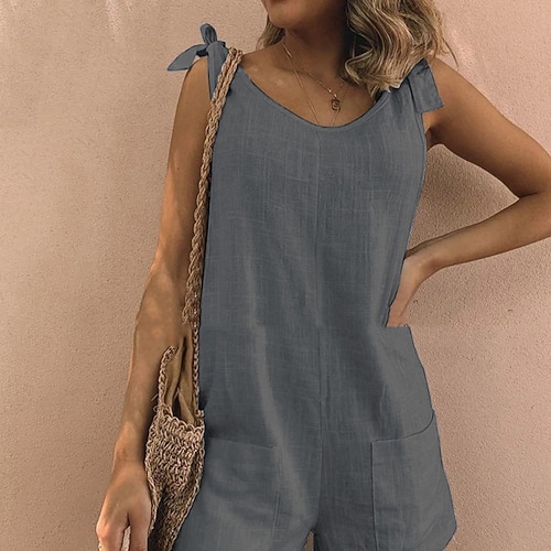Per donna Normale Pantaloni ispirati al lino Streetwear Tinta unica Senza Maniche Girocollo Tasca Streetwear Quotidiano Vestibilità regolare Nero Bianco Giallo Estate