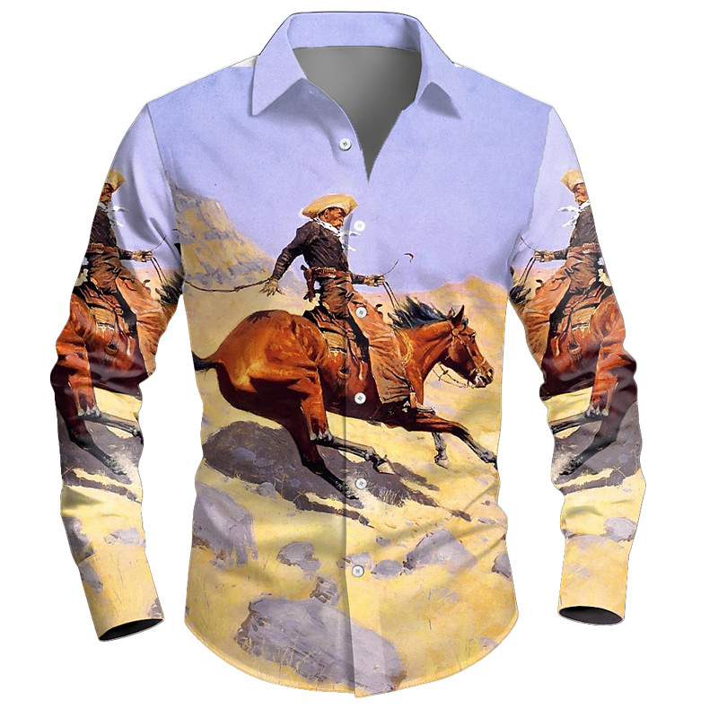 Men's Mountain Cowboy Riding Horse Shirt Western Shirt Cowboy Shirt Long Sleeve Vintage Retro Casual Outdoor WorkWear Spring Fall Turndown 3D Print Button Up Shirts Pink Purple Khaki