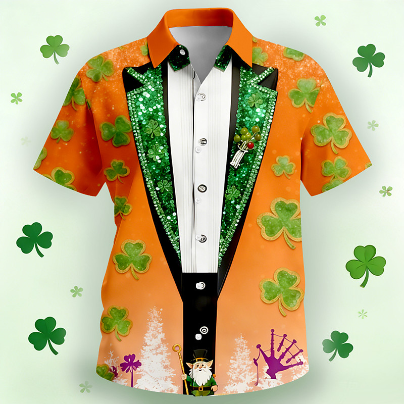 St. Patrick's Day Men's Shamrock Faux Collar and Suit Design Shirt Button Up Shirt Short Sleeve Fashion Casual Party Holiday Summer Spring Turndown 3D Print Collared Shirts Purple Orange Green