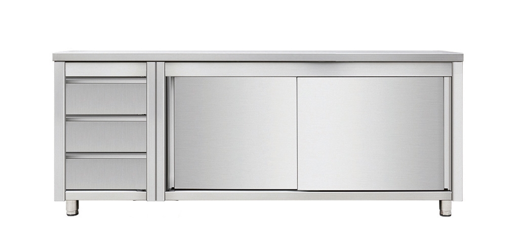 Skyrainbow Arbeitsschrank mit Schiebetüren und Schubladenblock links, 1600 x 700
