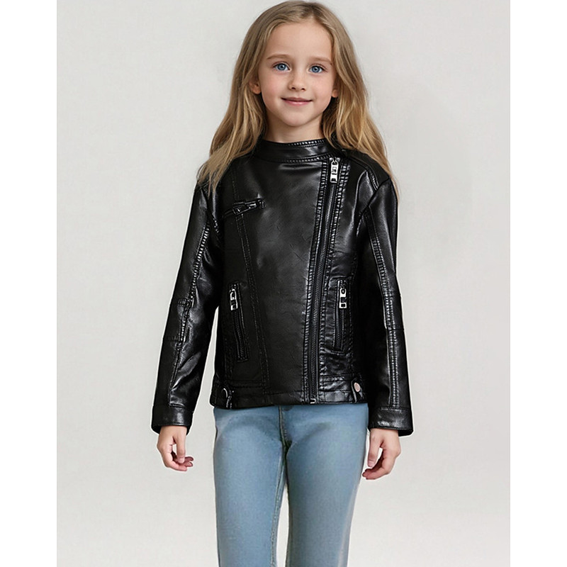 Kids Girls' Black Leather Jacket Jacket Solid Color Fashion Zipper Pocket Outdoor Coat Outerwear 4-12 Years Fall Black