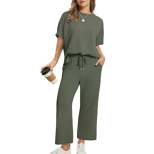 Per donna Set di Pantaloni Bolero Top Manica Corta Girocollo Semplice Coulisse Patchwork Moda Streetwear Casuale Quotidiano All'aperto Nero Verde militare Rosa scuro Estate Vestibilità comoda