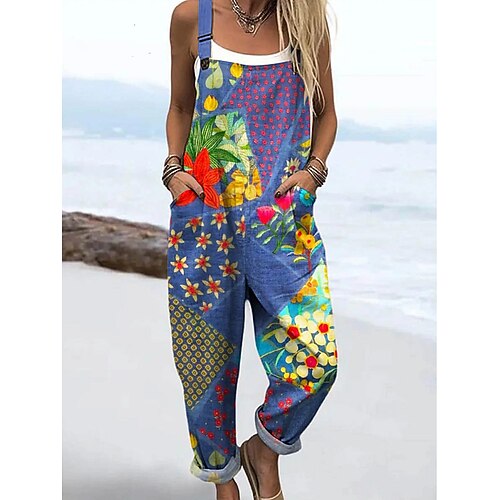 Per donna Tuta Attivo Floreale Senza Maniche Harem Girocollo Tasca Stampato Vacanza Casa Vestibilità comoda Blu Rosso Arancione Estate