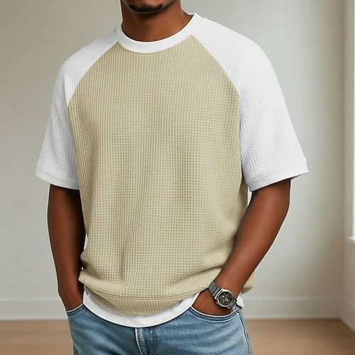 Per uomo Maglietta Waffle Maglietta Camicia a Maniche Corte Manica Corta Girocollo Estate Primavera Blocco di colori Neutro Streetwear Sport e Outdoor Patchwork All'aperto Vacanza Abbigliamento