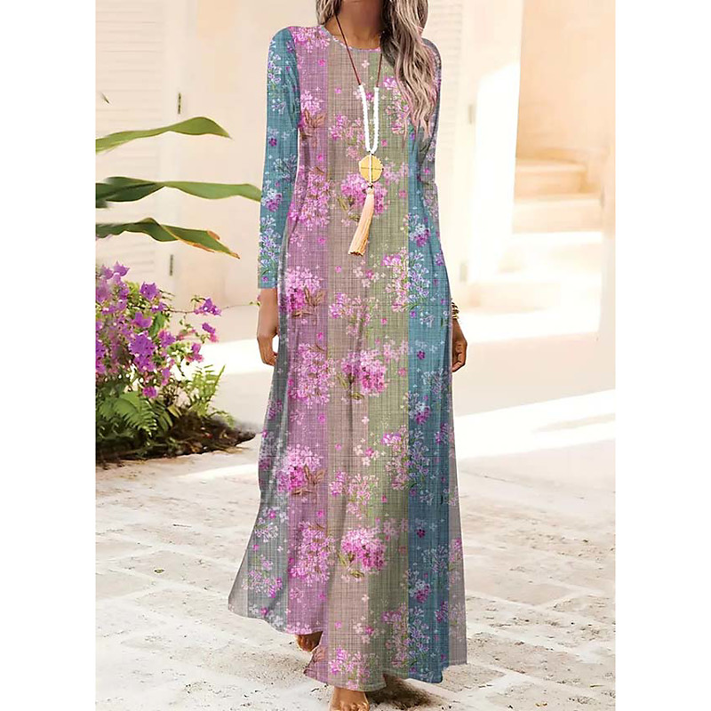 Women's Maxi Dress Sheath Dress T Shirt Dress Tee Dress Vacation Casual Boho Holiday Date Regular Fit Floral Graphic Geometric Long Sleeve Crew Neck Blue Deep Purple Pink Red Spring Fall