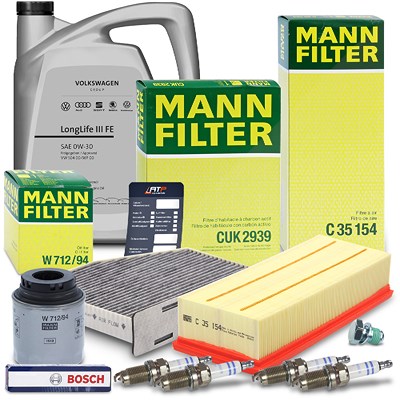 Mann-filter Inspektionspaket Set C + 5l 0W-30 Motoröl [Hersteller-Nr. 40974893] für VW, Seat