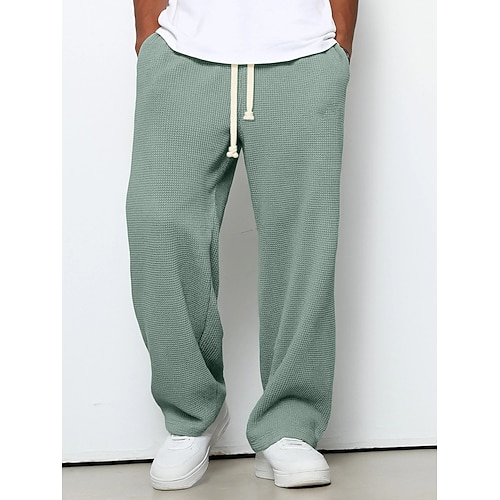 Per uomo Pantaloni della tuta a gamba dritta Pantaloni a Nido d'Ape Coulisse Griglia Traspirante Lunghezza intera Casuale Quotidiano Liscio Marrone Scuro Nero Micro-elastico