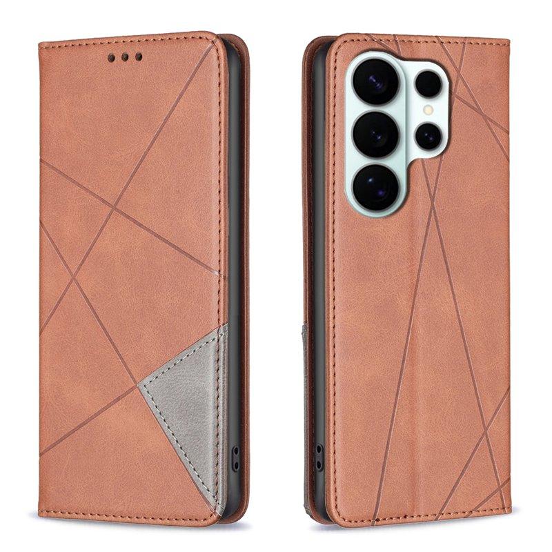 Mobilskal till Samsung Galaxy S26 Ultra Geometrisk Prägling Äkta Läder - Brun