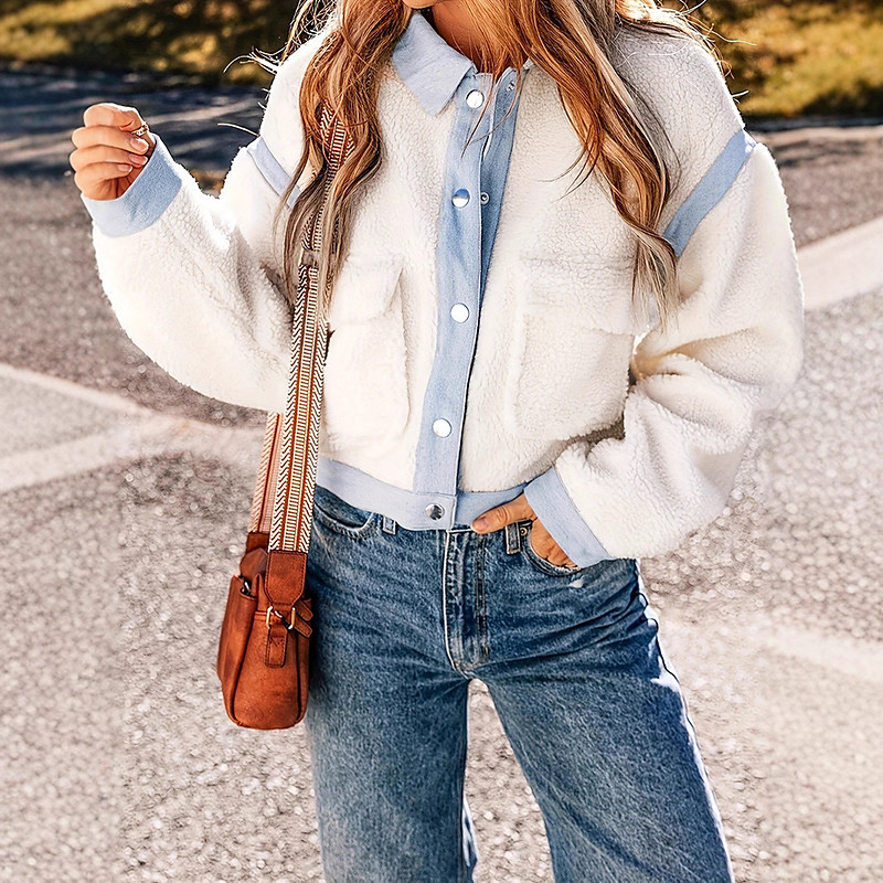 Women's Winter Coat Casual Jacket Warm Comfortable Pocket Buttons Fashion Casual Solid Color Vacation Street Casual Daily Wear Short Turndown Regular Fit Long Sleeve Outerwear White Fall Winter