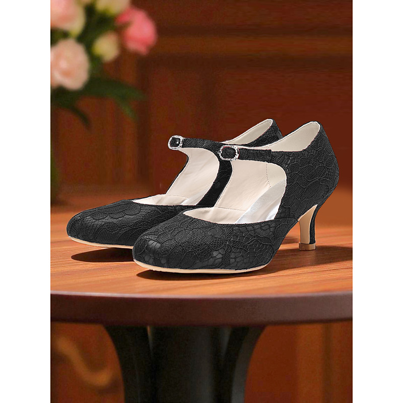 Women's Burgundy Lace Mary Jane Heels with Kitten Heel and Rhinestone Buckle - 1920s Elegant Retro Shoes for Ladies, Ideal for Weddings, Dance Parties Formal Occasions