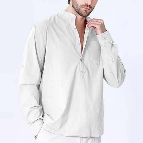 Per uomo Camicia Camicia con colletto alla coreana Camicia popover Camicia casual Nero Bianco Giallo Blu reale Azzurro cielo Manica Lunga Semplice Henley Vacanza Quotidiano Tasca Frontale