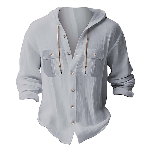Per uomo Camicia Camicia Estiva Camicia casual Camicia da Spiaggia Camicia con Bottoni Marrone Scuro Nero Bianco Blu marino Azzurro cielo Manica Lunga Semplice Con Cappuccio Vacanza Casuale Tasca