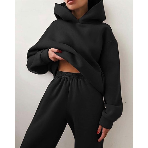 Per donna Elegante Caldo Attivo Set di Pantaloni Bolero Top Manica Lunga Con Cappuccio Semplice Arricciato Patchwork All'aperto Vacanza Lavoro Nero Rosa Azzurro cielo Autunno Vestibilità regolare