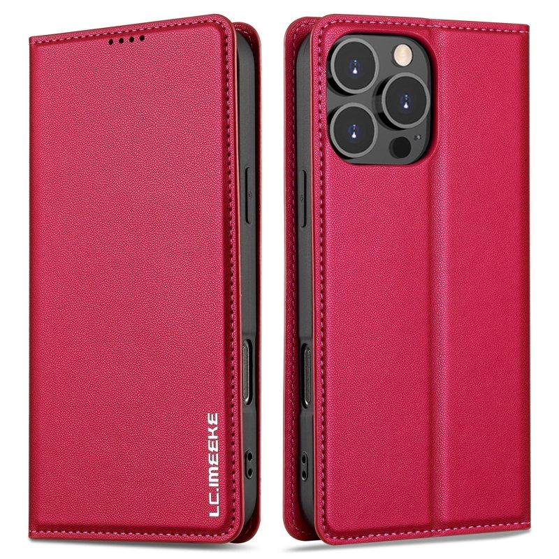 LC.IMEEKE L1 Series iPhone 16 Pro Max Plånboksfodral Konstläder - Röd