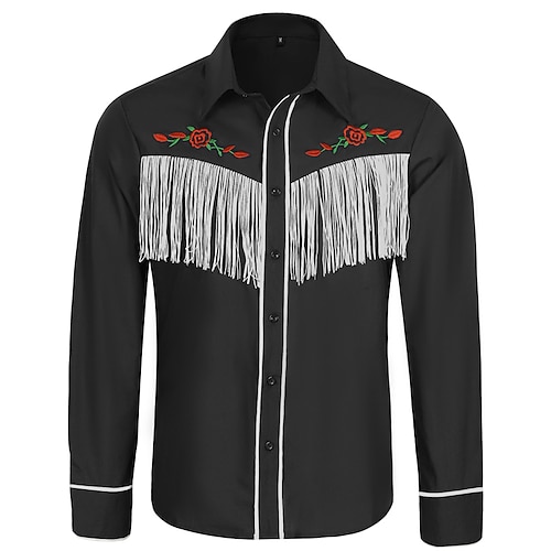 Per uomo Camicia Camicia Estiva Camicia casual Camicia da Spiaggia Camicia Western Camicia con Bottoni Nero Blu marino Kaki Manica Lunga Tinta unica Fiore Bavero Vacanza Casuale Ricamato Abbigliamento
