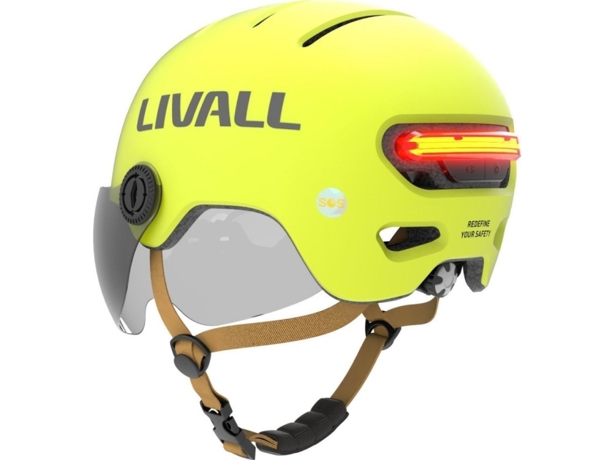 Livall L23 hjelm gul 54-58cm med LED/SOS beskyttelseslinse