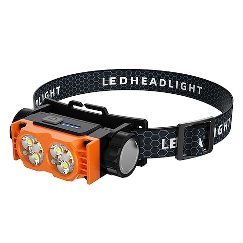 Lampada frontale a LED ricaricabile, faro magnetico super luminoso con ricarica rapida di tipo C, impermeabile, potenza in tempo reale, leggera, fascio regolabile a 120°, compatta per campeggio,