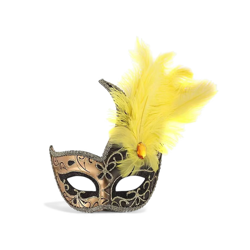 Women's Purple Feather Masquerade Mardi Gras Mask - Glitter Venetian Half-Mardi Gras Mask with Gold Trim for Carnival, Costume Balls Glamorous Party Events