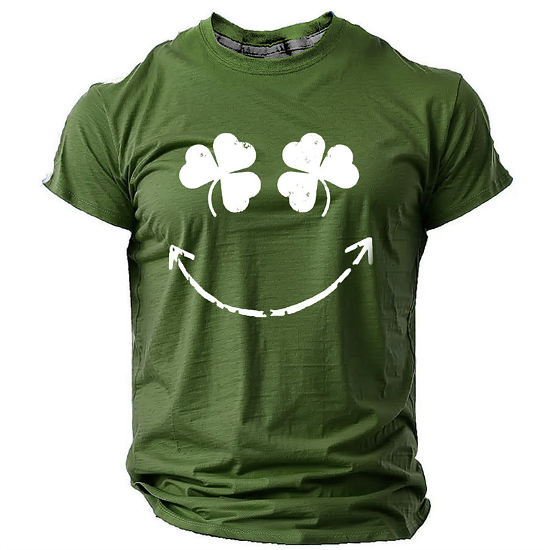 St. Patrick Men's Graphic Shamrock Smile Face Lucky Irish T Shirt T shirt Tee Short Sleeve T shirt 3D Print Crew Neck Shirt Daily Designer Casual Sports Outdoor Holiday Going out Black Pink Light Grey