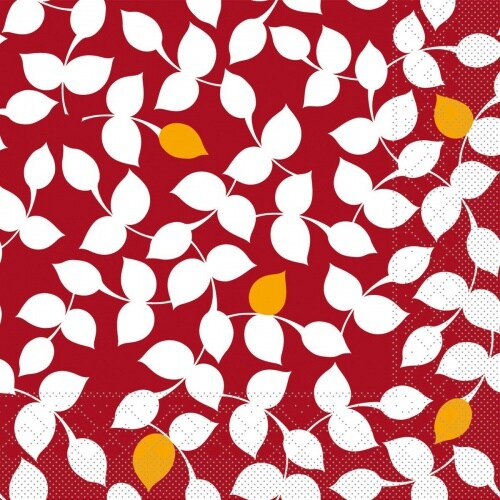 Mank Serviette Tissue Silas in Bordeaux-Curry, 40 x 40 cm, 100 Stück - Blätter Laub Herbst