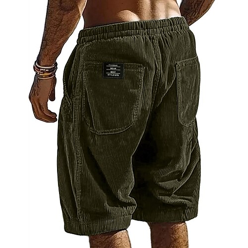 Per uomo Shorts Pantaloncini casual Pantaloncini di velluto a coste Tasca Elastico in vita Semplice Traspirante Lunghezza al ginocchio All'aperto Vacanza Abbigliamento quotidiano Vacanza Moda Nero