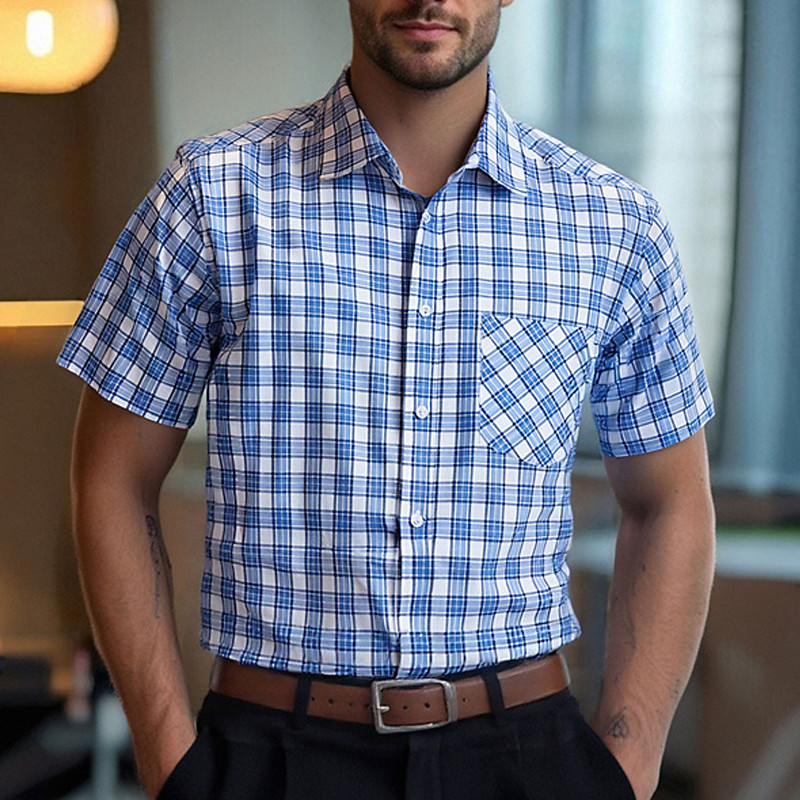 Men's Shirt Dress Shirt Button Up Shirt Plaid Wedding Daily Red Blue Green Short Sleeve Turndown Summer Spring Clothing Apparel Front Pocket