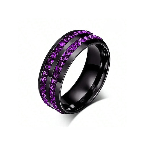 Weihnachtsring aus Titanstahl für Herren mit roten und blauen Kristallsteinen, mehrere Farben, perfekt für die Feiertage und als Geschenk
