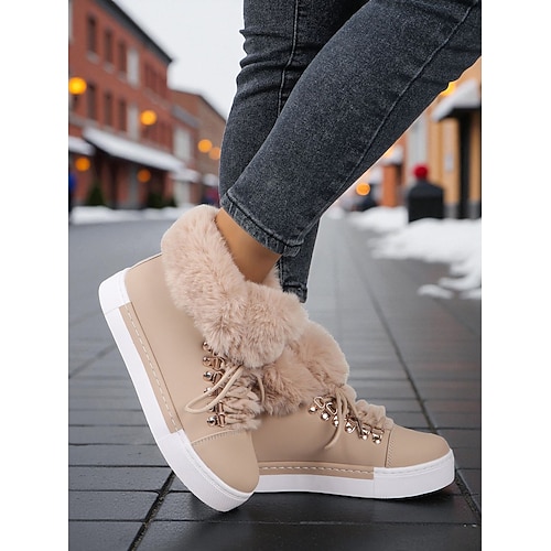 sneakers da donna in pelliccia sintetica rossa - calde scarpe invernali con lacci e fodera in peluche, calzature casual natalizie per look outdoor e street style