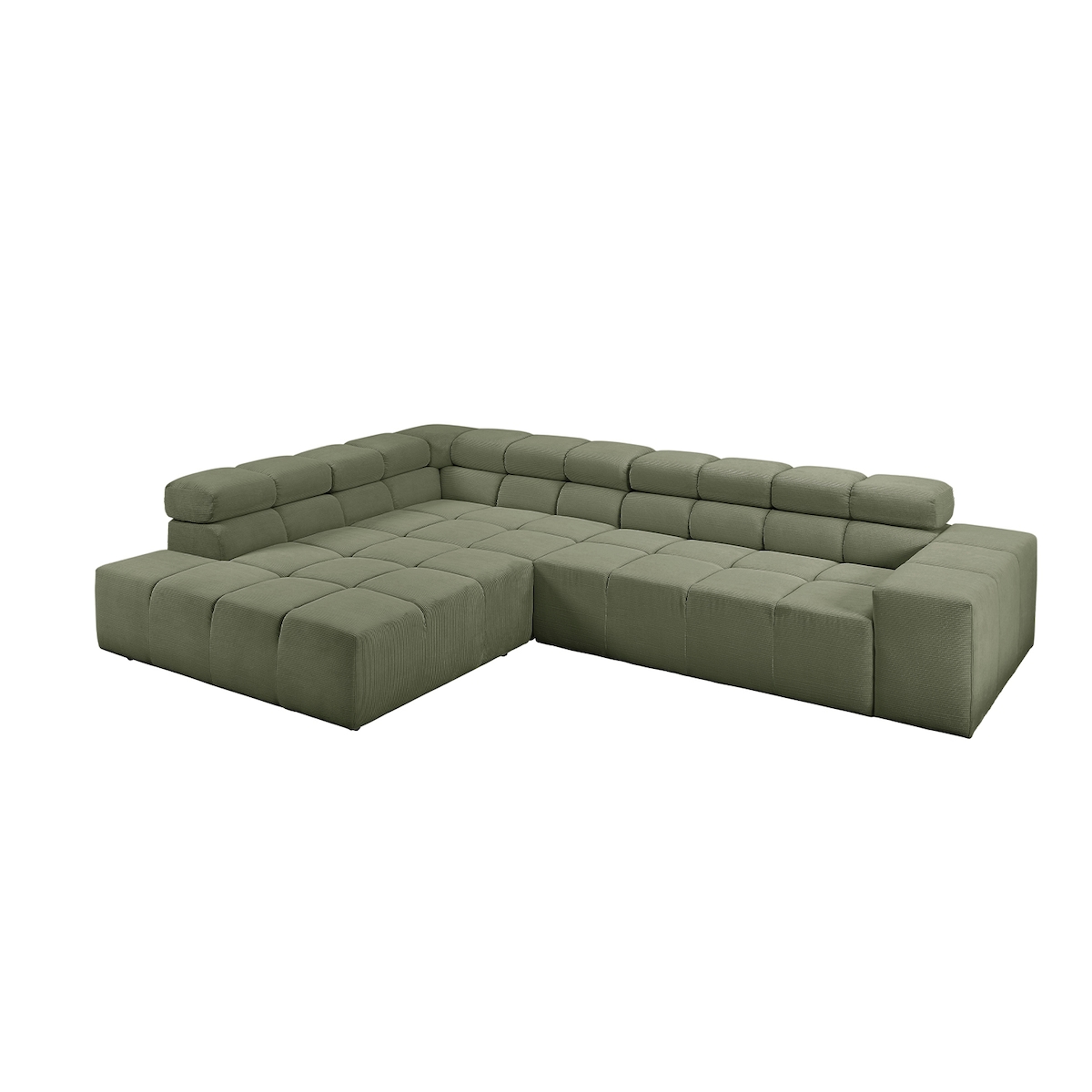 KAWOLA Sofa NEVADA Ecksofa Feincord olivgrün mit motorischem Sitzvorzug Recamiere links
