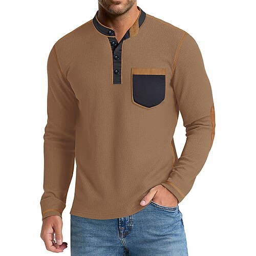 Herren Waffel-Henley-Hemd T-Shirt Herrenhemden mit Ellbogenflicken Langarm Henley Sommer Herbst Winter Einfarbig Einfach Mode Designer Lässig Vintage-Stil Farbblock Lässig Täglich Outdoor Hellblau