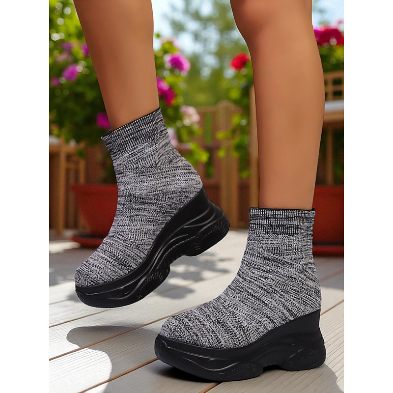 Women's Flyknit High-Top Platform Sock Boots – Breathable Lightweight Sporty Style, Casual and Outdoor Shoes for Walking, Daily Wear and Travel