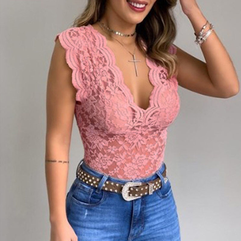 Women's Blouse Lace Tops Solid Color Plain Vintage Cute Ladies Sleeveless V Neck Crop Tops Work Daily Holiday Lace Tunic Black White Yellow Pink Wine Summer Spring
