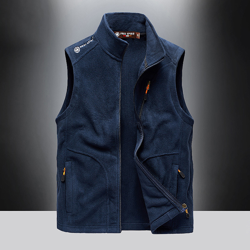 Men's Fishing Vest Daily Casual Fall Winter Pocket Fleece Polyester Thermal Warm Plain Zipper Stand Collar Regular Fit Black Army Green Dark Blue Dark Gray Vest