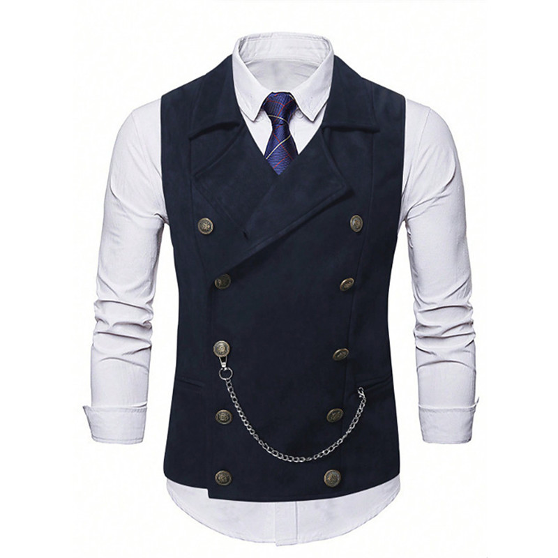 Men's Vest Waistcoat Gilet Vacation Party Business Fashion Casual Spring Fall Buttons Polyester Comfortable Plain Double Breasted Lapel Regular Fit Black Navy Blue Coffee Vest