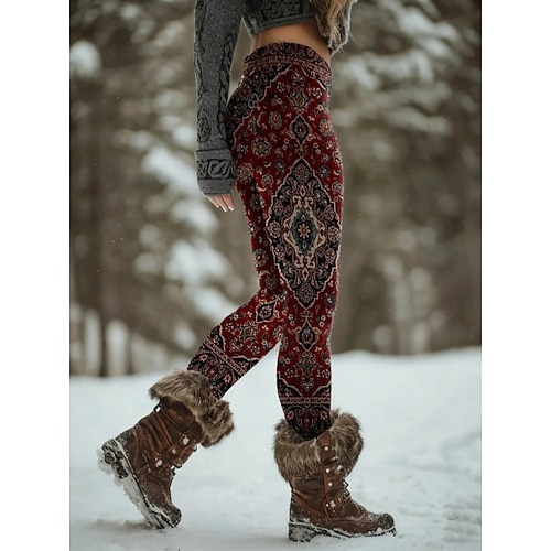 Per donna Leggings Vacanza Vintage Stile Etnico Lunghezza intera Vita Alta Grafico Astratto Stampa 3D Asciugatura Rapida Traspirabilità Morbido Elasticizzato Inverno Blu Nero Vino Rosso Primavera