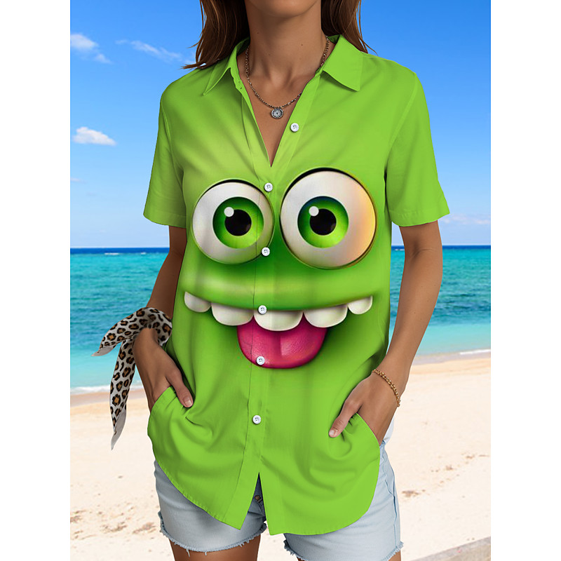 Women's Shirt Long Sleeve Button Down Blouse Graphic 3D Vintage Tropical Daily Sleeveless Short Sleeve Shirt Collar Regular Tops Daily Yellow Pink Green Summer Spring