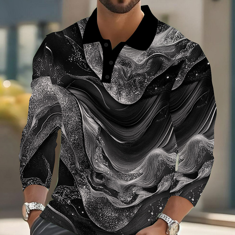 Men's Abstract Marble Polo Long Sleeve Polo Shirts Lapel Casual Street Athleisure Daily Wear 3D Print Buttons Spring Fall Winter Blue Gold Green