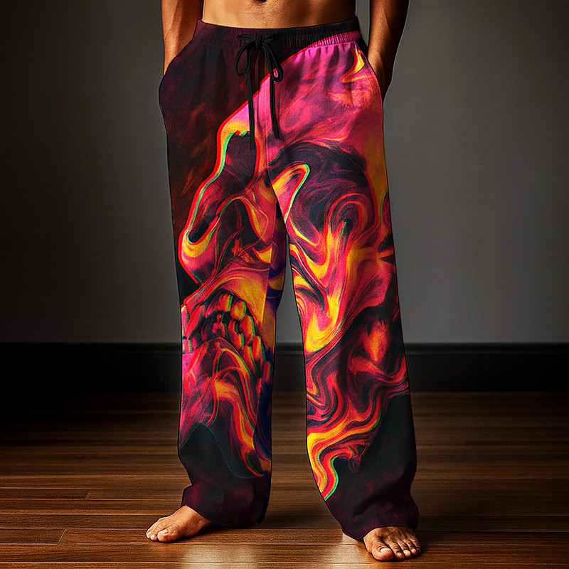 Halloween Men's Skull Halloween Costumes Trousers Baggy Pants Casual Pants Mid Waist Dark Gothic Style Holiday Elastic Drawstring Waist Linen-Like Pants with Pockets Spring Fall 3D Print Black Green