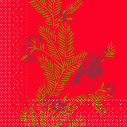 Tissue Serviette Jesse, 33 x 33 cm, 100 Stück - Mank - Weihnachtsserviette Ilex-Zweige Vogel