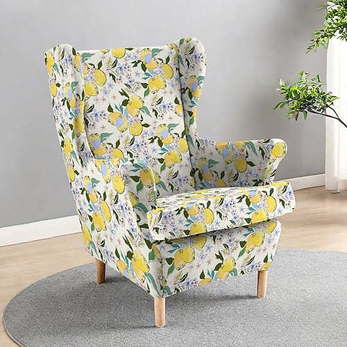 Copripoltrona con schienale alto, copripoltrona con stampa geometrica a righe e motivi floreali