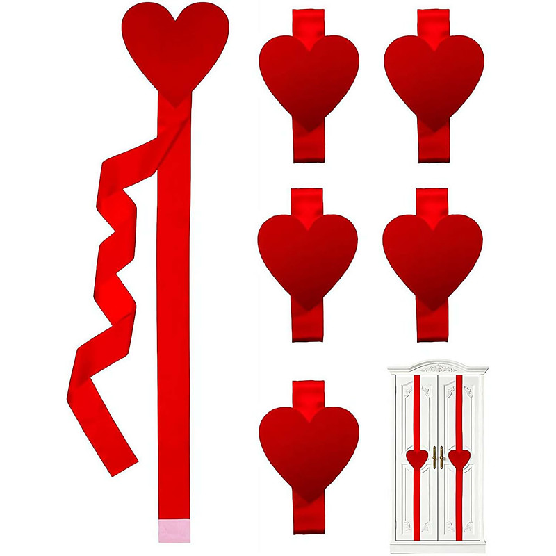 6Pcs Valentine's Day Cabinet Love Heart Ribbow, 41 Inch Large Door Webbing for Fireplace Party Wedding Holidays Wrapping Decor, Seasonal Home Decor for Cabinets Fireplace