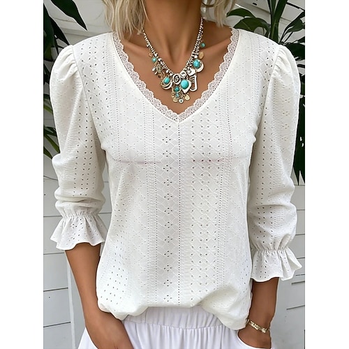 Per donna Blusa Tinta unica Elegante Vintage Essenziale Manica Lunga Scollo a V Top Regolari Quotidiano Lavoro Traforato Nero Bianco Giallo Rosa Viola Estate Primavera Autunno