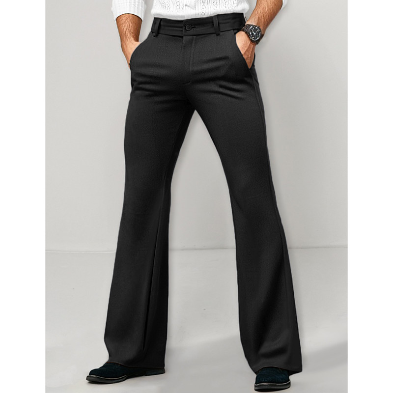 Men's Trousers Dress Pants Bell Bottom Flared Pants Pocket Straight Leg Solid Colored Comfort Wedding Office Business Streetwear Retro Black White Micro-elastic