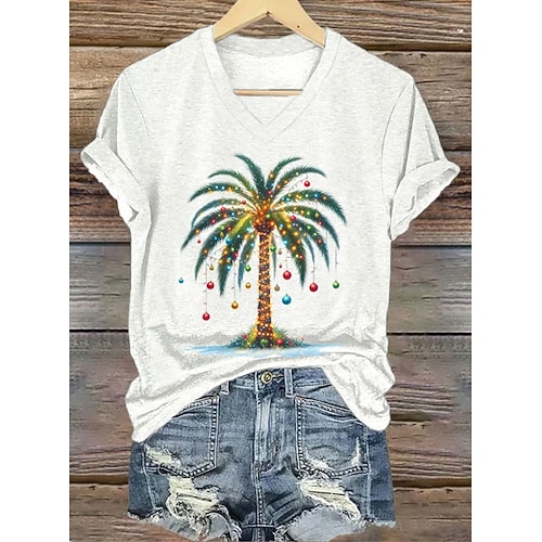 T-shirt da donna grafica albero vintage elegante classica maniche corte scollo a V top regolari quotidiani stampa blu nero bianco rosso verde estate primavera autunno inverno